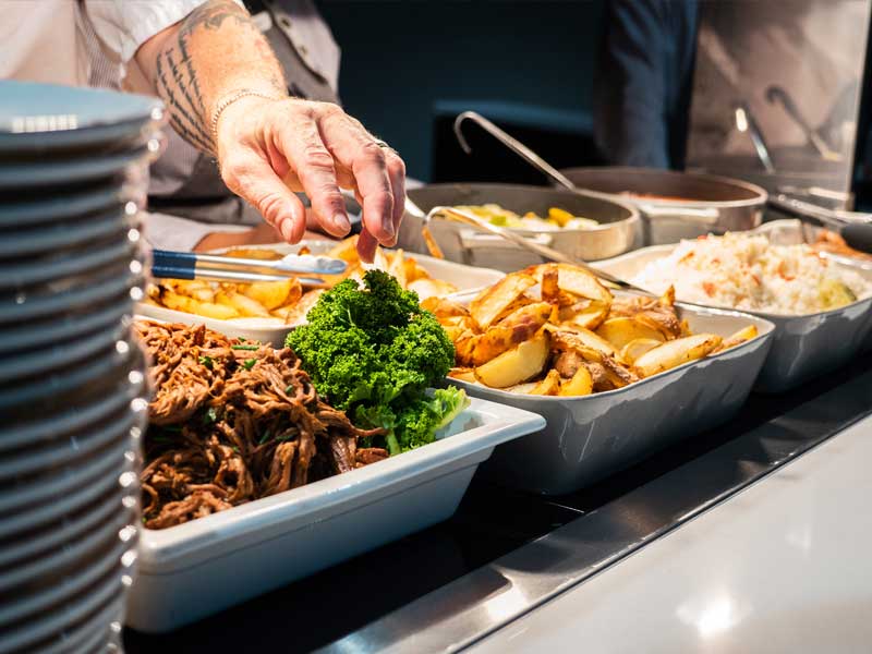 Lunch / Dinner: stews, curry, chilli dishes, sliced meats in gravy or sauce, pasta in sauce, vegetables (dry or in liquid), ribs with sauce, chicken portions.