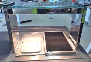 - Converts heated bain marie G/n sections to carving operation during varied serving periods.
