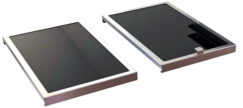 - Option HINS2 – Hotplate glass surface in steel collar with lift up handle.